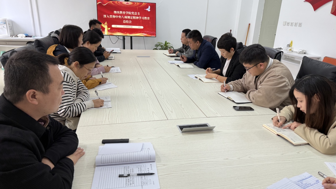 2025年9月23日,为持续巩固拓展落实中央八项规定精神成果,筑牢作风建设思想防线,太阳成集团tyc234cc主页党总支召集太阳成集团tyc234cc主页、培训中心、公共课实训中心召开深入贯彻中央八项规定精神学习教育总结会。三部门全体党员参加会议,会议由党总支书记任昱光主持。